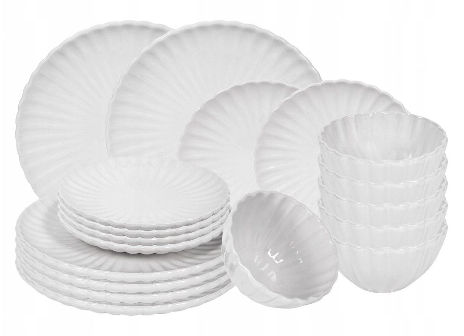 Toto nádobí je časově neotřelé a trendy, skvěle se hodí do každé kuchyně. Jeho lesklý bílý design je výborným doplňkem pro různé styly servisu a prostředí. Tyto talíře mohou zdobit váš stůl při hostinách s přáteli nebo sloužit k pohodlnému snídání či obědu. Určitě si zaslouží místo ve vaší kuchyňské skříni.6 x miska6 x malý talíř6 x velký talíř