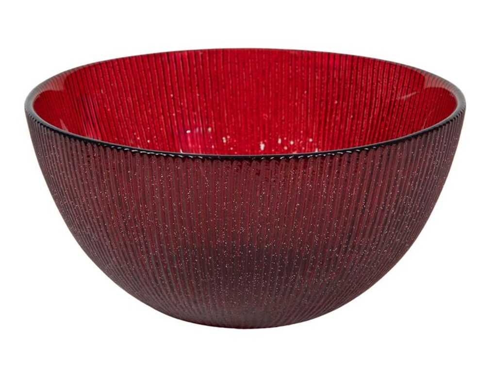 MISKA LESKLÁ ČERVENÁ S GLITRY D15*7CM 0.5L