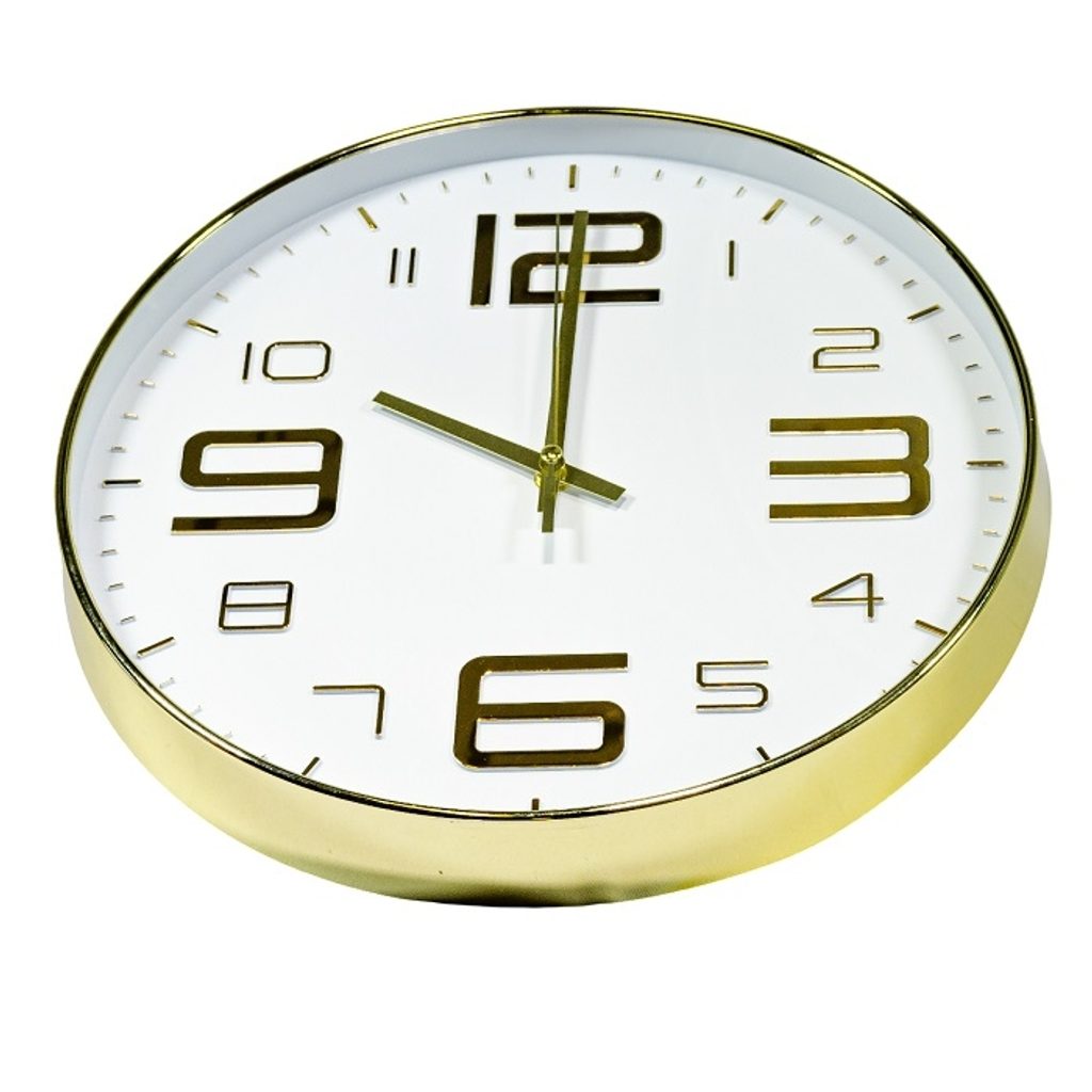 - hodiny d35cm, BÍLÉ, zlatý rám i ciferník, sklo