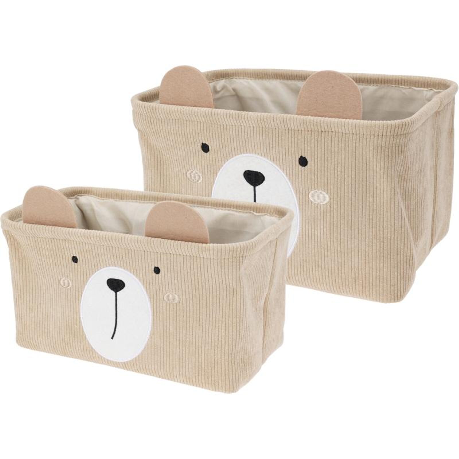 Praktická sada úložných košů s roztomilým motivem medvěda pomůže udržet dětský pokoj uklizený a organizovaný. Koše jsou vyrobeny z kvalitního materiálu a mají pevnou konstrukci pro snadné skladování hraček, oblečení nebo jiných drobností.