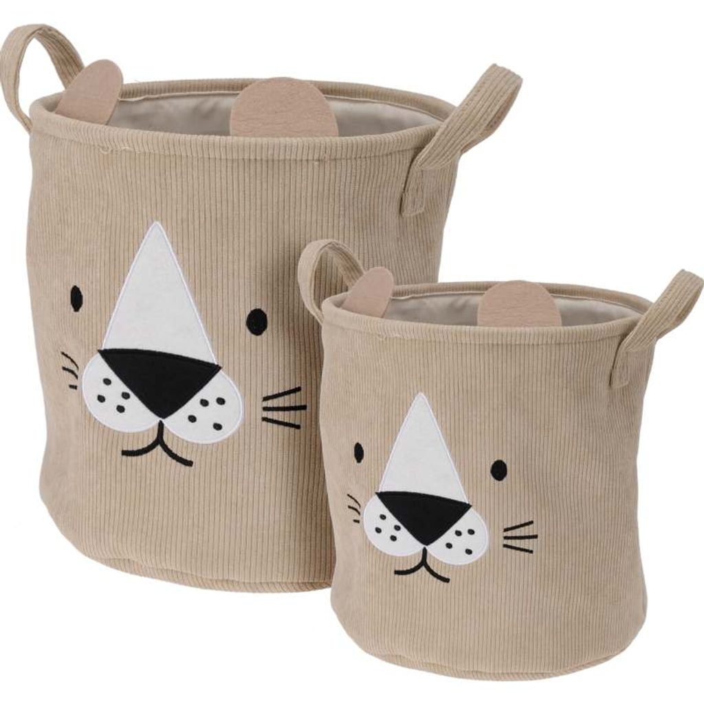 Stylová a praktická sada úložných košů je ideálním doplňkem do dětského pokoje. Koše jsou vyrobeny z kvalitní manželské látky a zdobí je roztomilá výšivka zvířátka. Díky dvěma pevným držadlům je snadno přenesete kamkoliv potřebujete. Skvěle poslouží na ukládání hraček, prádla nebo jiných drobností.