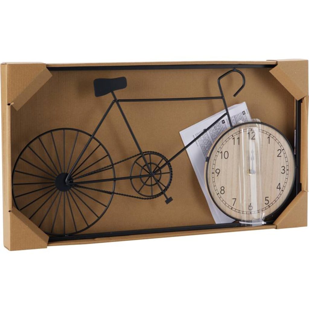 Stylové nástěnné hodiny v moderním industriálním designu se stanou výrazným doplňkem vašeho interiéru. Originální rám z černého kovového drátu ve tvaru kola doplňuje MDF ciferník, který zajišťuje snadnou čitelnost času.