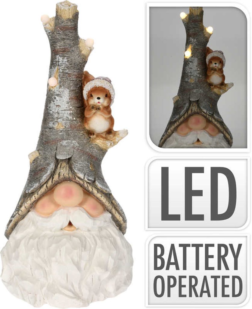 HOMESTYLING Vánoční dekorace skřítek s LED osvětlením 57 cm KO-APF477020 - jedinečná svítící Vánoční dekorace v designu hlavy vánočního skřítka s veverkou