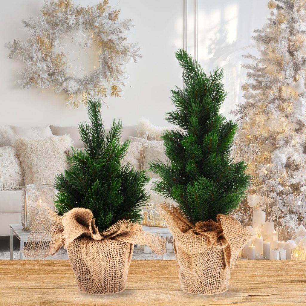 Dekorativní umělá borovice v přírodním jutovém obalu, vhodná jako stylová vánoční nebo celoroční dekorace. Kombinace PE, PP a jutoviny zajišťuje přirozený vzhled i dlouhou životnost. Stromek je detailně zpracován s realistickým rozložením hrotů různých délek, které působí autenticky a nadýchaně.