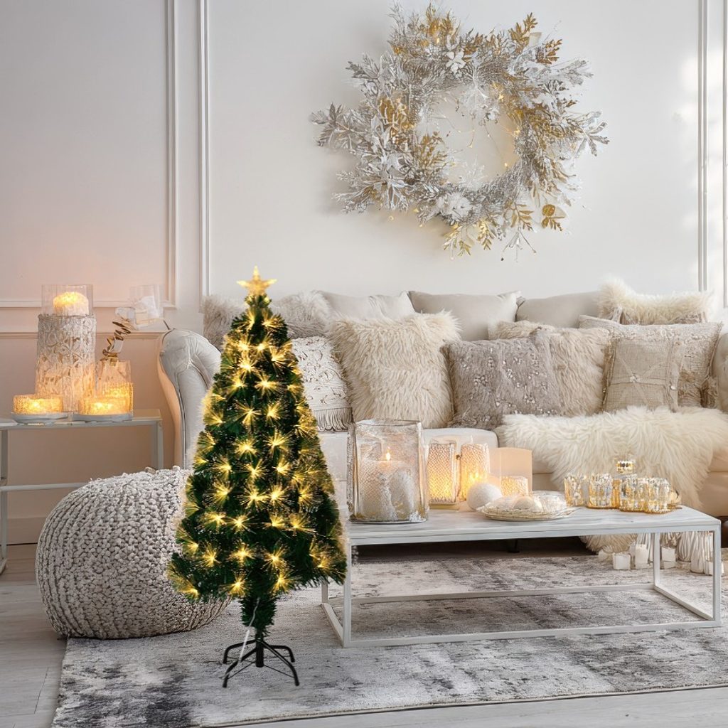 Elegantní vánoční stromek s optickým vláknem a teplými bílými LED diodami, ideální pro interiérovou dekoraci a vytvoření slavnostní atmosféry.