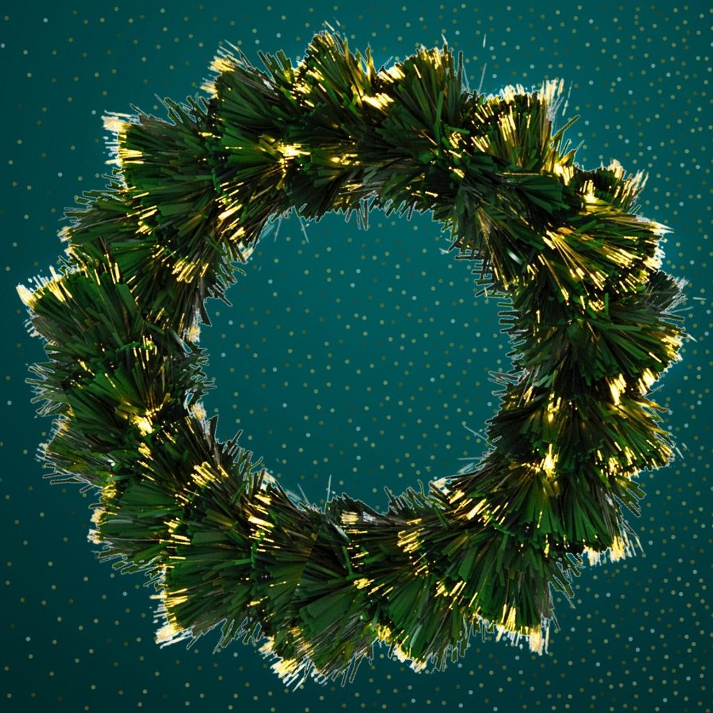 Stylový vánoční věnec s optickým vláknem, ideální pro dekoraci interiéru s jemným teplým světlem.