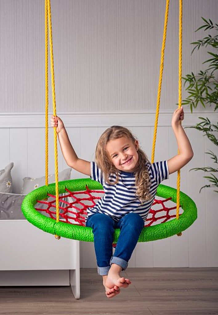 Houpačka pro zábavu i relaxaci. Sedák je vypleten provazovou sítí, kovový rám je rovněž chráněný provazem. Použitý materiál umožňuje komfortní odpočinek i bezpečné houpání. Houpačka se může používat pouze vsedě nebo vleže. Zavěšuje se za kovové kroužky, které jsou provlečené na závěsných lanech. Lana jsou pevně zakončena zataveným uzlem ve spodní části kruhu. Průměr kruhu: 83 cm. Max.nosnost: 80 kg nebo pro 1-2 děti. Délka závěsných lan je 170 cm. Tato houpačka je určena pro venkovní použití. Umístění je vhodné na plochý, ne betonový, dlážděný a asfaltovaný povrh, s minimálním odstupem 2 m od možných překážek, jako jsou ploty, garáže, domy, převislé větve, prádelní šňůry nebo elektrická vedení.