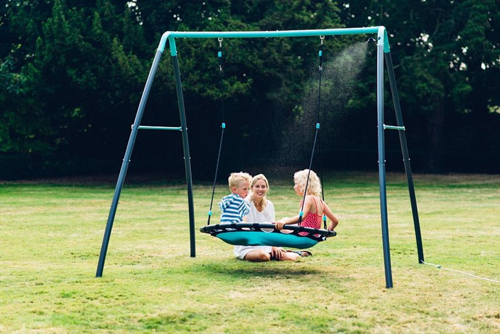 Houpací kruh s kovovou konstrukcí a tryskou na výrobu mlhy