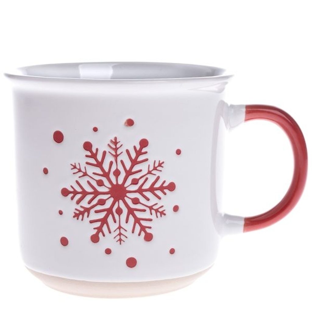 - hrnek 450ml BÍLÝ, ČERVENÁ VLOČKA, keramika