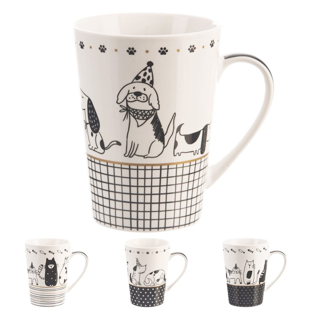 Hrnek s uchem. Materiál: porcelán. Mix dekorů. Rozměry: objem 0,55 l, pr. 9,5 cm, v. 13 cm. Vhodný do myčky i MVT. Vhodný pro děti od 3 let.