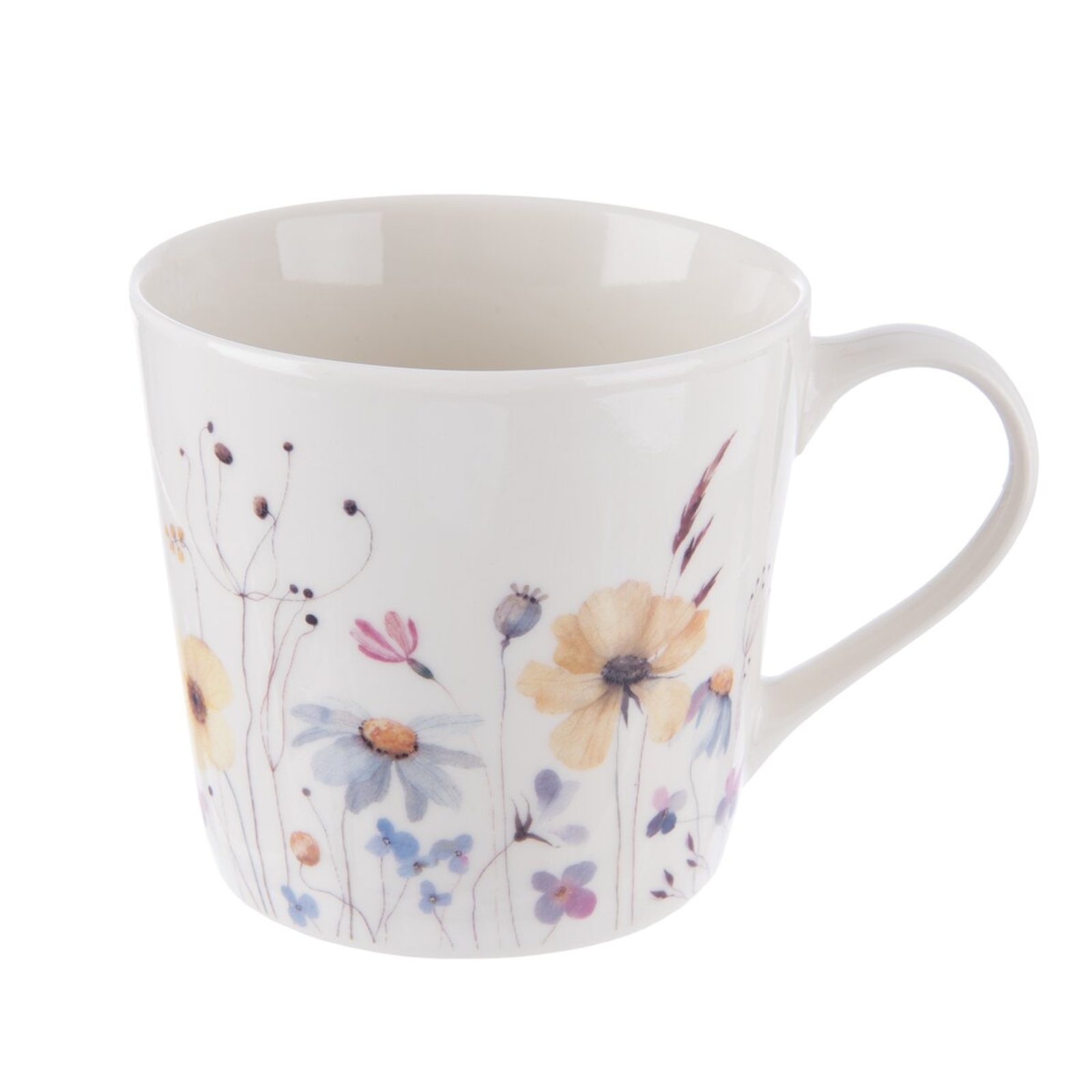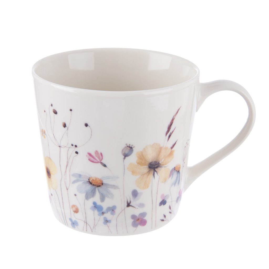 Hrnek s uchem s dekorem květů. Materiál: porcelán. Rozměry: pr. 9,5 cm, v. 9 cm, o. 430 ml. Lze mýt v myčce a použít v MVT.