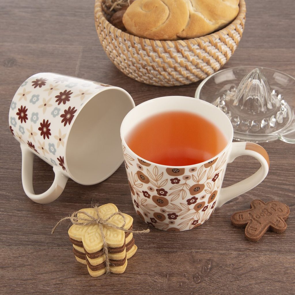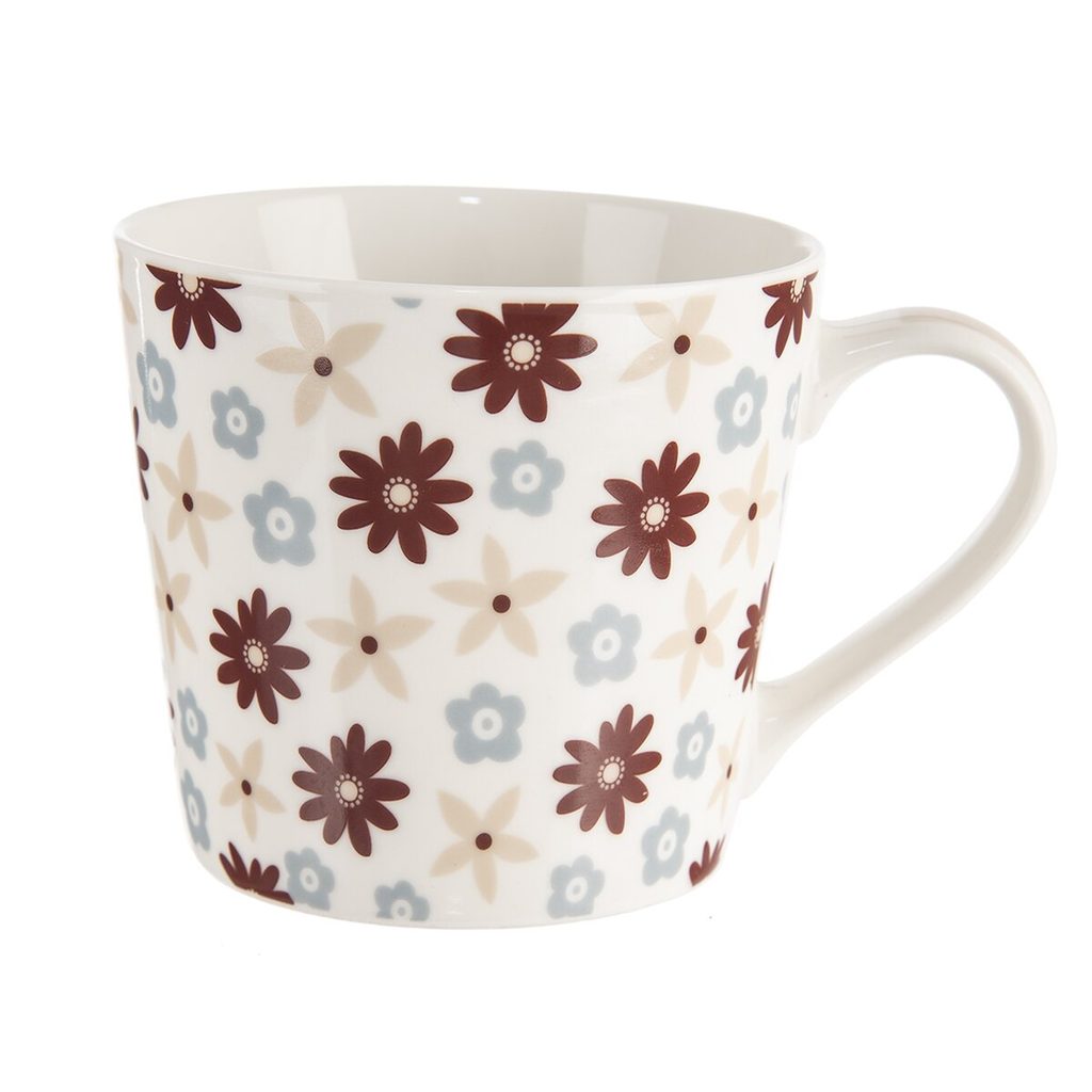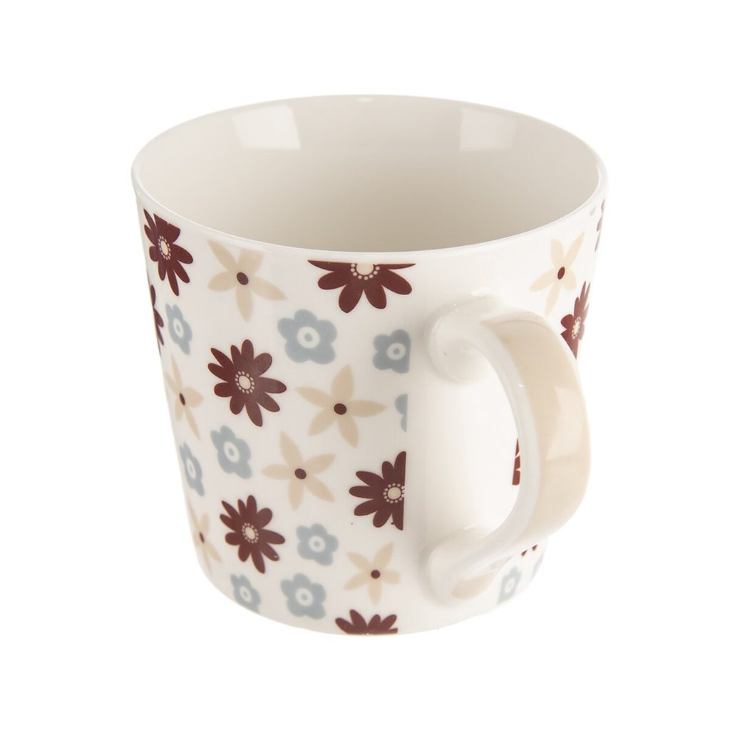 Hrnek s uchem s květinovým dekorem. Materiál: porcelán. Rozměry: objem 0,44 l, pr. 10 cm, v. 9 cm. Vhodný do myčky i MVT.