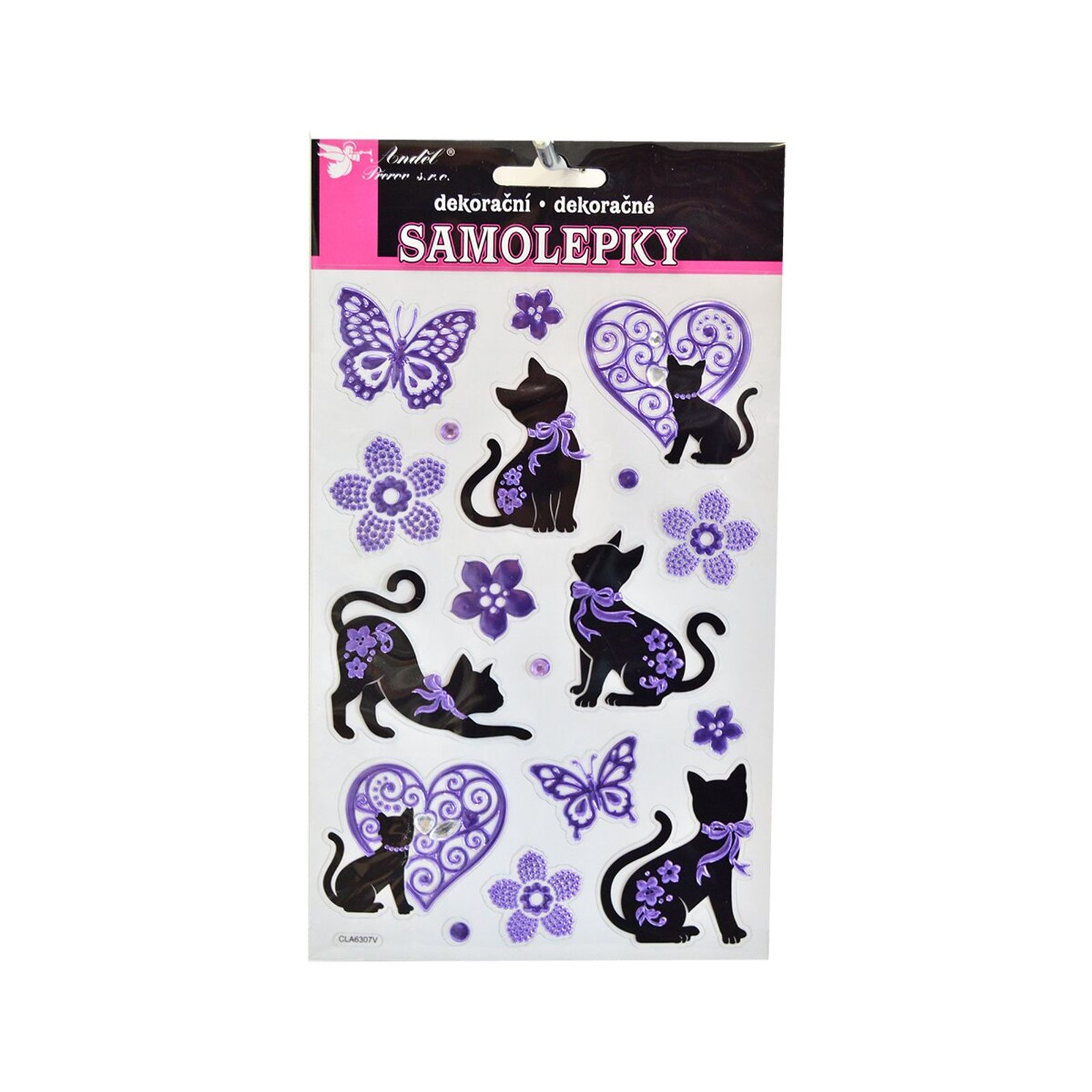 I Samolepky kočky černo-fialové s kamínky 14x21 cm