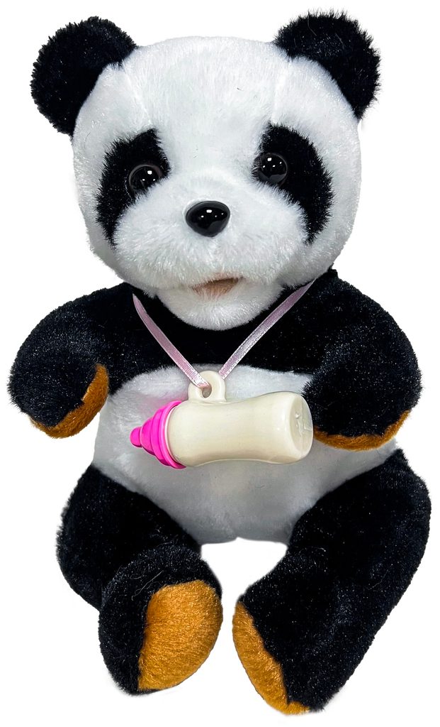 Přiložte láhev s mlékem k tlamě, ozve se zvuk pití. Vyjměte láhev s mlékem, ozve se roztomilý zvuk.