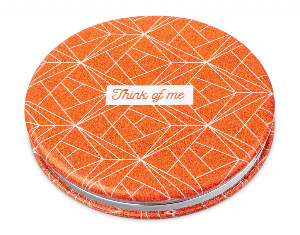 Kulaté kapesní zrcátko do kabelky s motivem Think of Me