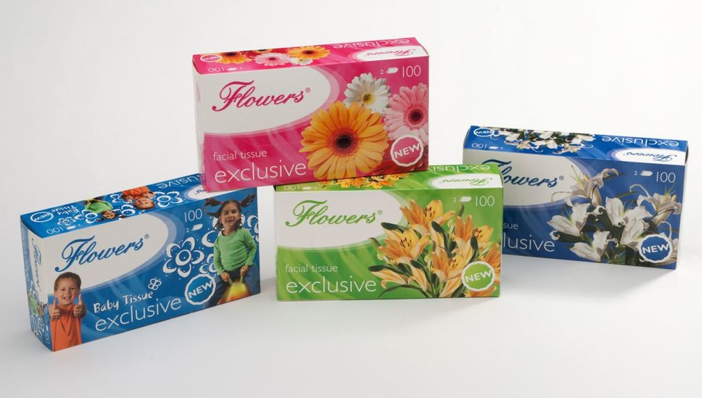 - kapesníky kosmet.2vr.,100ks, Flowers,krabička,4dekory