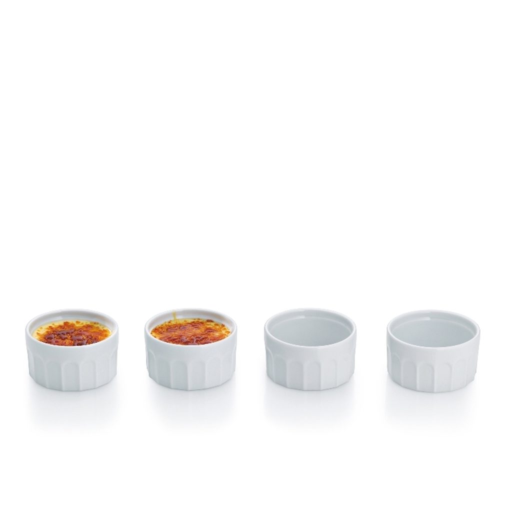 Jsou perfektní jako formy na creme brulée. Ohnivzdorné misky jsou vhodné do trouby do 280 °C. A po zkaramelizaci cukrové vrstvy lze krém ihned podávat. Vhodný gurmánský plynový hořák Manou pro karamelizaci je samozřejmě k dispozici také v řadě Kela.