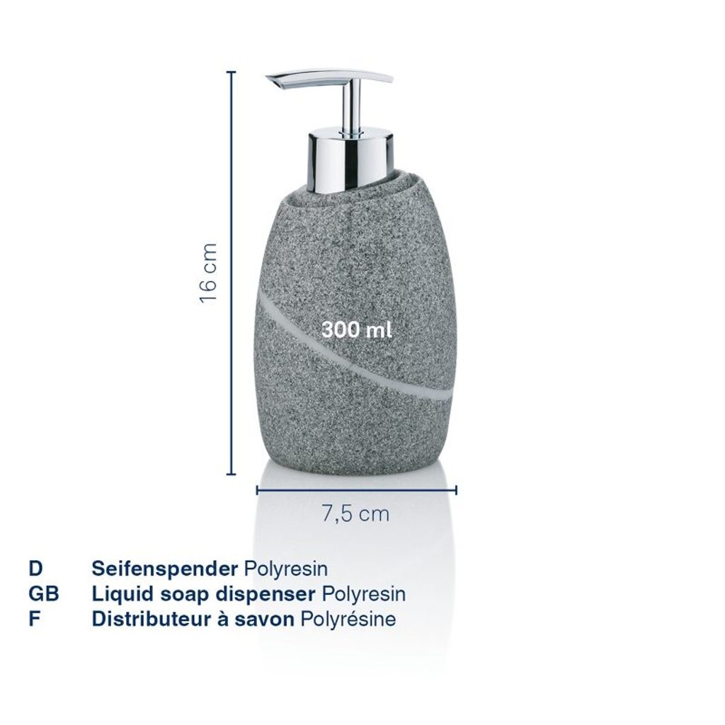 KELA Dávkovač mýdla TALUS poly, dekor kámen šedý KL-20257 - materiál: poly/ABS plast- barva: šedá- dekor: kámen- průměr: 7,5 cm- výška: 16 cm- série: Talus- značka: KELA