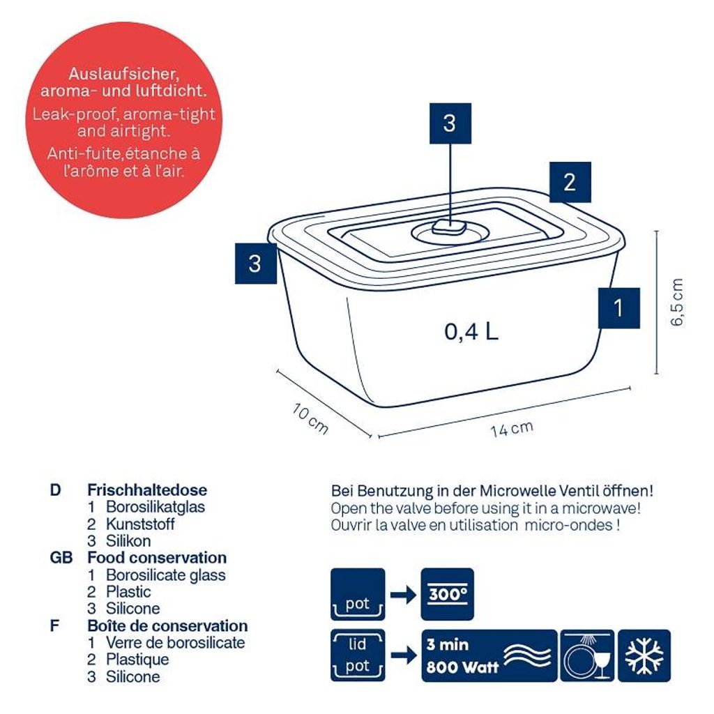 S naší obdélníkovou nádobou na potraviny z borosilikátového skla si vyberete kvalitu a funkčnost. Ať už jste doma nebo na cestách, vaše potraviny jsou vždy optimálně chráněny a zůstanou déle čerstvé. Objednejte nyní a vyzkoušejte výhody tohoto inovativního úložného řešení!