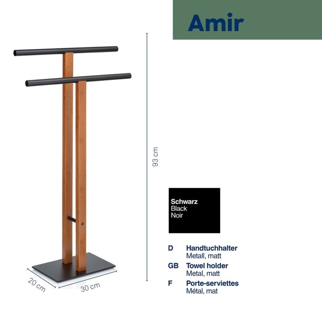 KELA Držák na ručníky Amir kov/bambus černá/hnědá 30x20x93 cm KL-22572