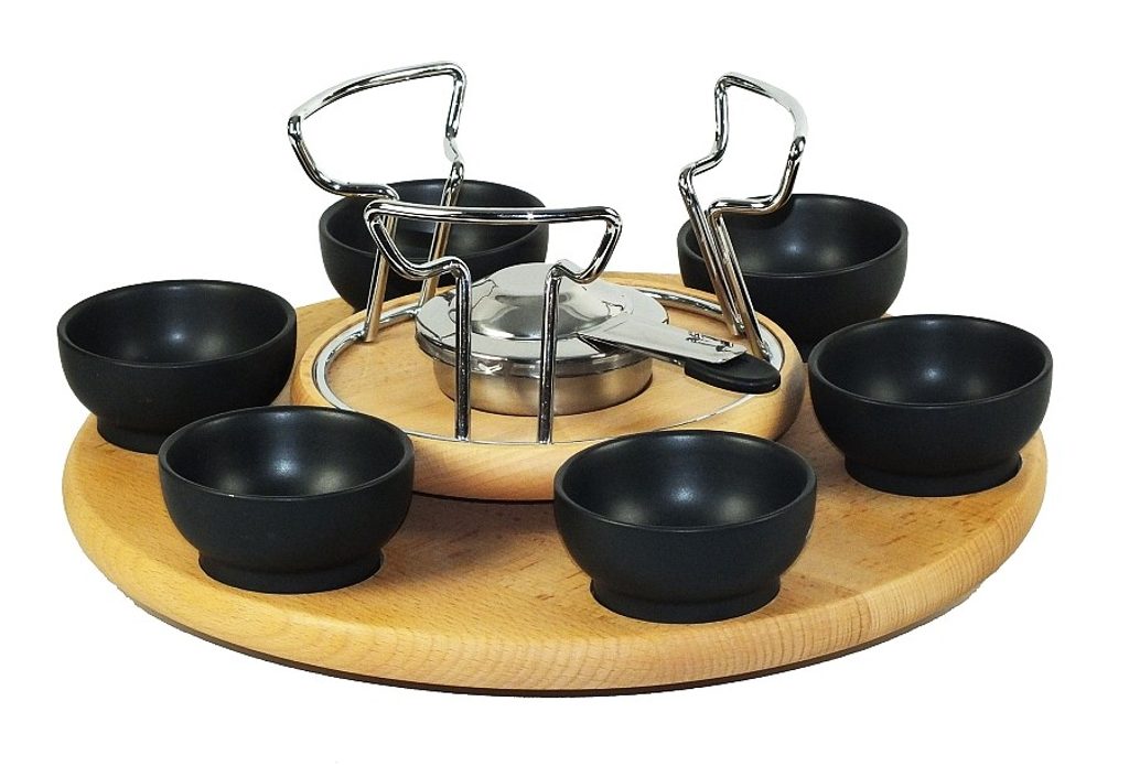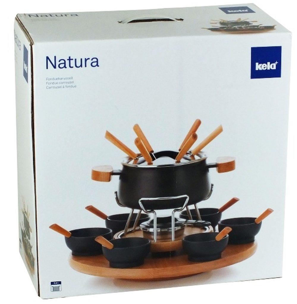 KELA Fondue sada 23 ks NATURA smalt / keramika / dřevo KL-61201
