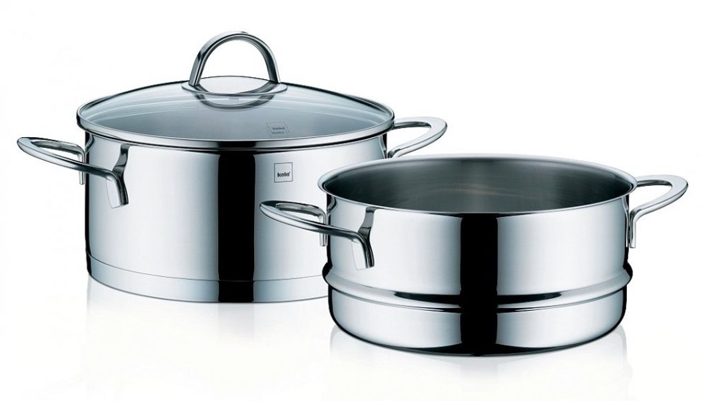 Luxusní hrnce a pánve německé značky KELA, řady Cailin se zárukou 5 let jsou vyrobeny z leštěné nerezové oceli 18/10, mají vícevrstvé termoakumulační dno, sílu stěny 0,8 mm, skleněné poklice a nerezové rukojeti. Jsou vhodné pro všechny typy sporáků včetně indukčních.