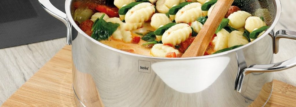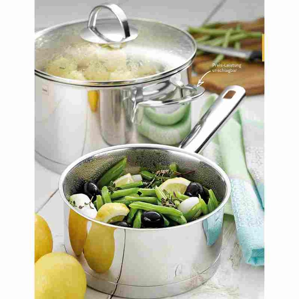 Luxusní hrnce a pánve německé značky KELA, řady Cailin se zárukou 5 let jsou vyrobeny z leštěné nerezové oceli 18/10, mají vícevrstvé termoakumulační dno, sílu stěny 0,8 mm, skleněné poklice a nerezové rukojeti. Jsou vhodné pro všechny typy sporáků včetně indukčních.