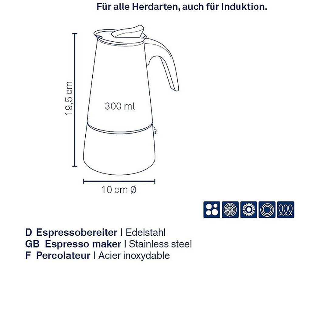 KELA Konvice na espresso Ferrara nerez černá 19,5 cm 10,0 cm 300,0 ml KL-10899 Vhodná i na indukci! Nerezová ocel, 19,5 cm v, 10 cm 300 ml, 6 šálků