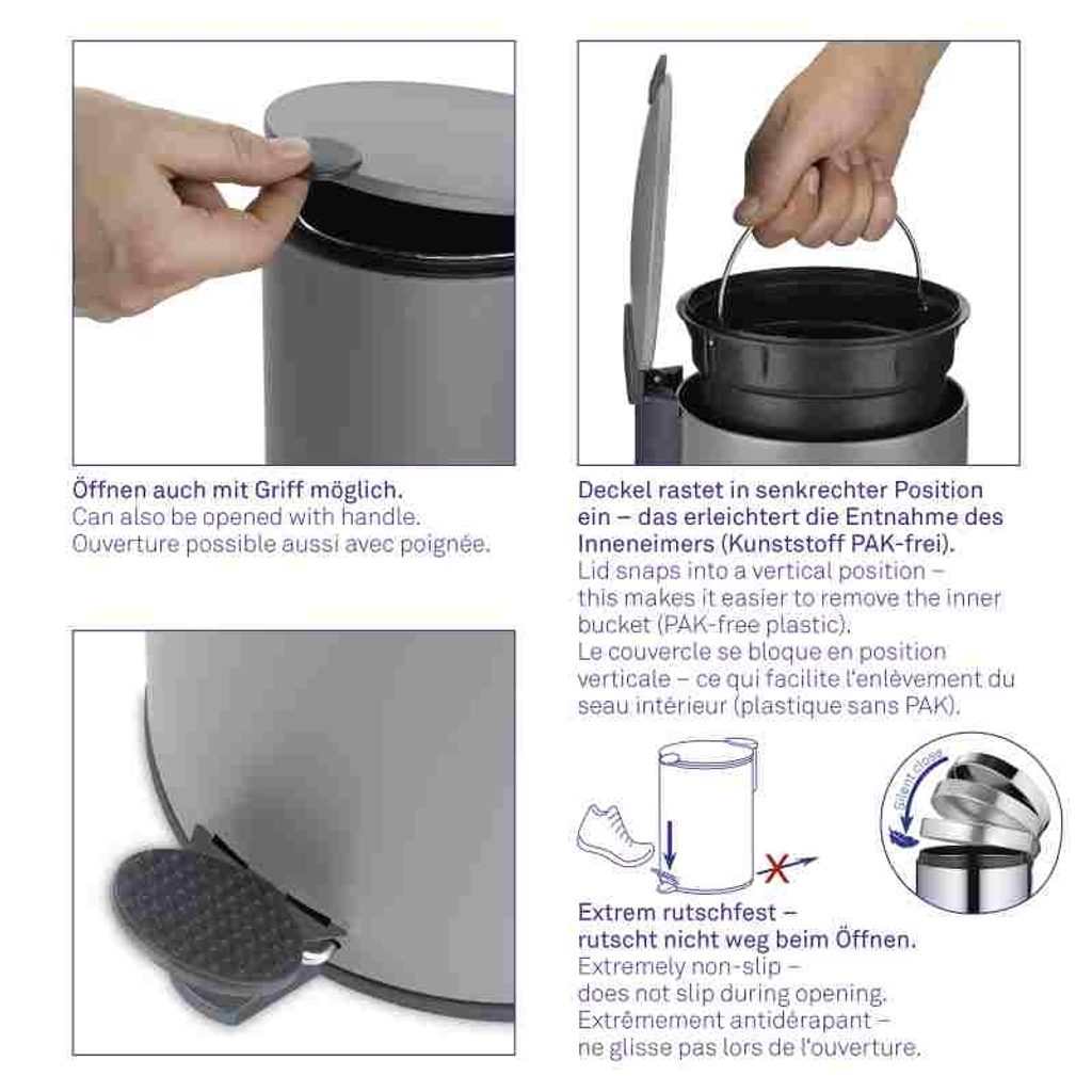 Pedálový koš Mats v matné stříbrné barvě je nejen elegantní, ale také praktický doplněk do každé domácnosti či kanceláře. Díky systému tichého zavírání se víko dovírá hladce a bez rušivého hluku. Protiskluzová základna zajišťuje stabilitu a pohodlné používání.