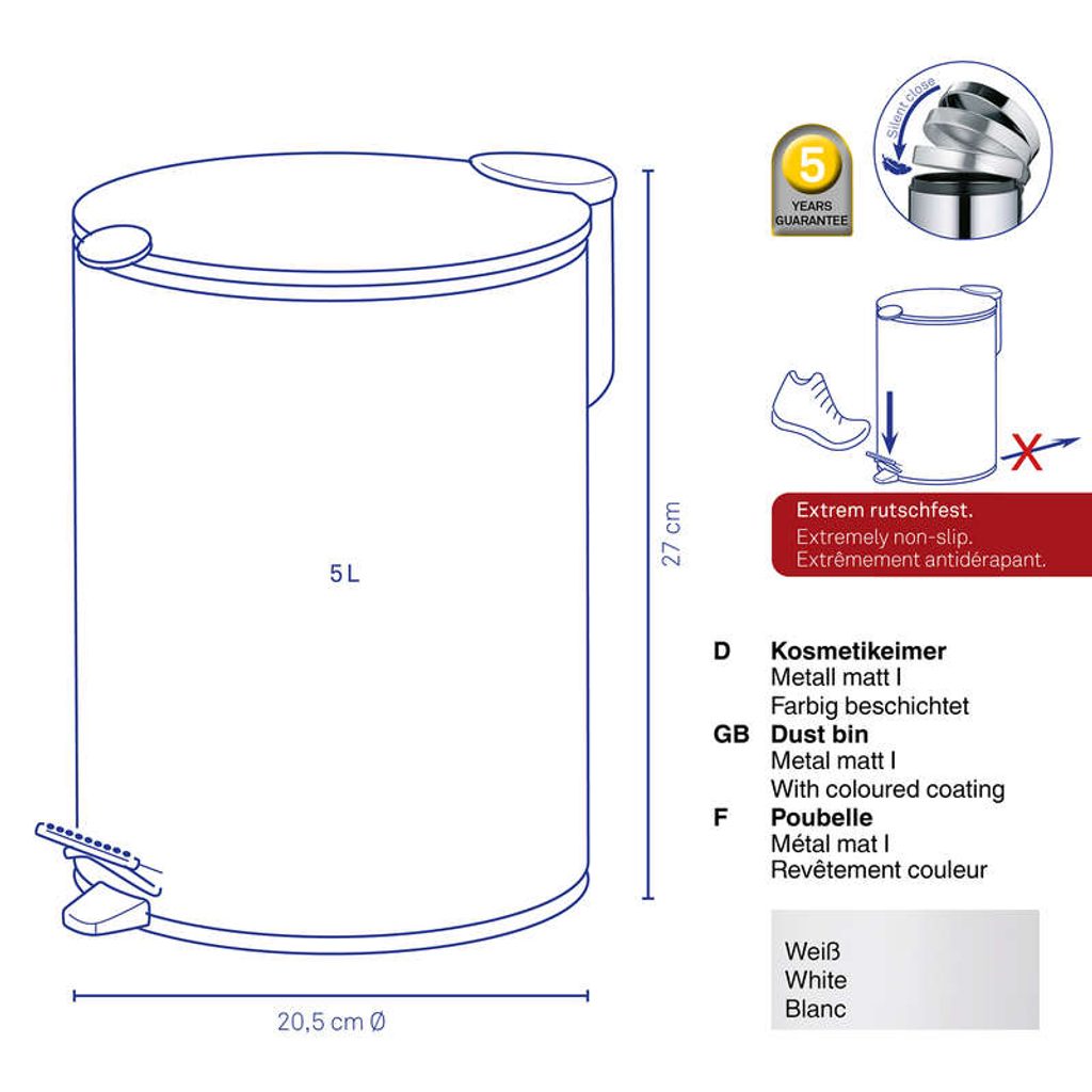 KELA Kosmetický koš 5 l MATS bílá KL-23701
