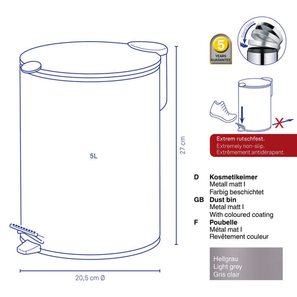 KELA Kosmetický koš 5 l MATS šedá KL-23700