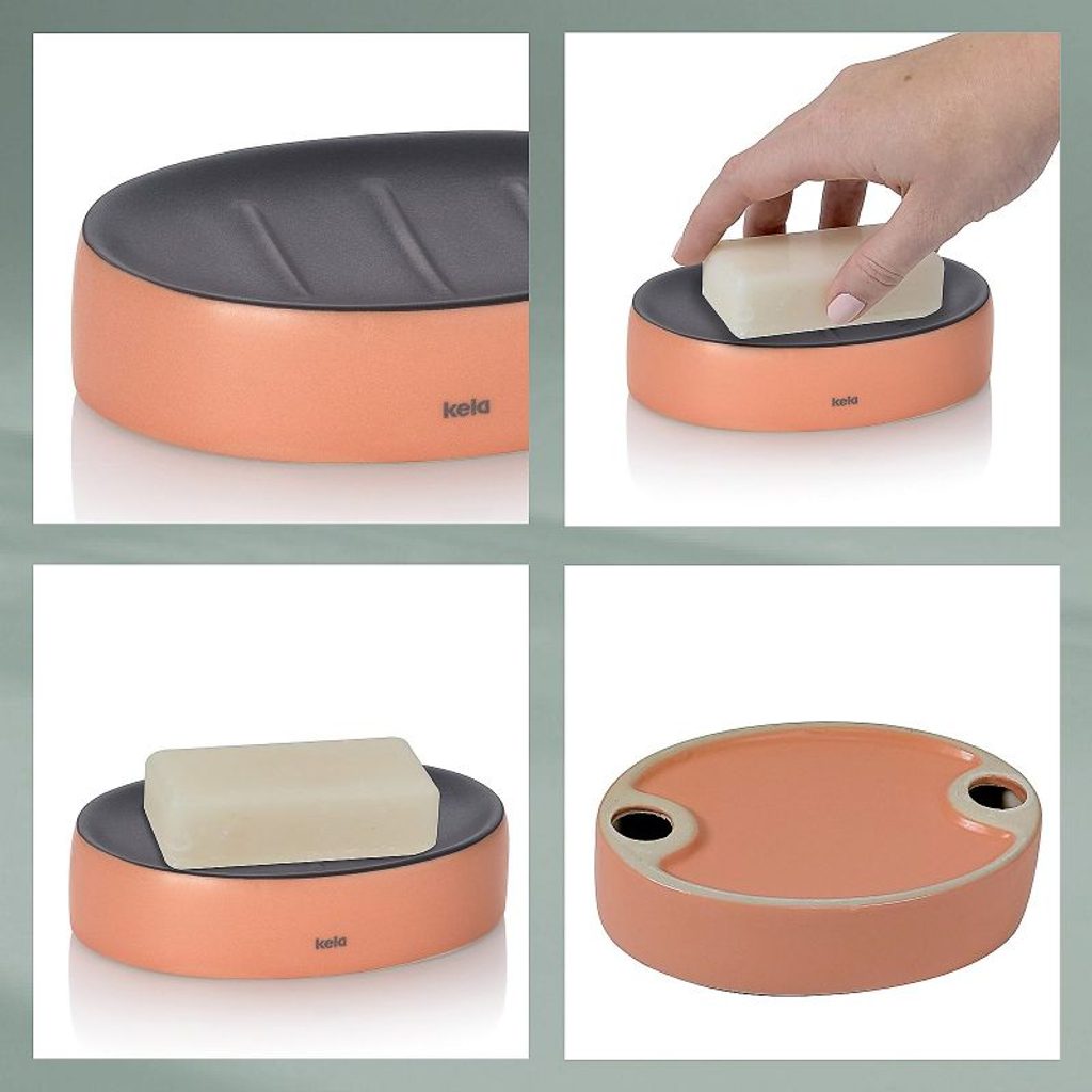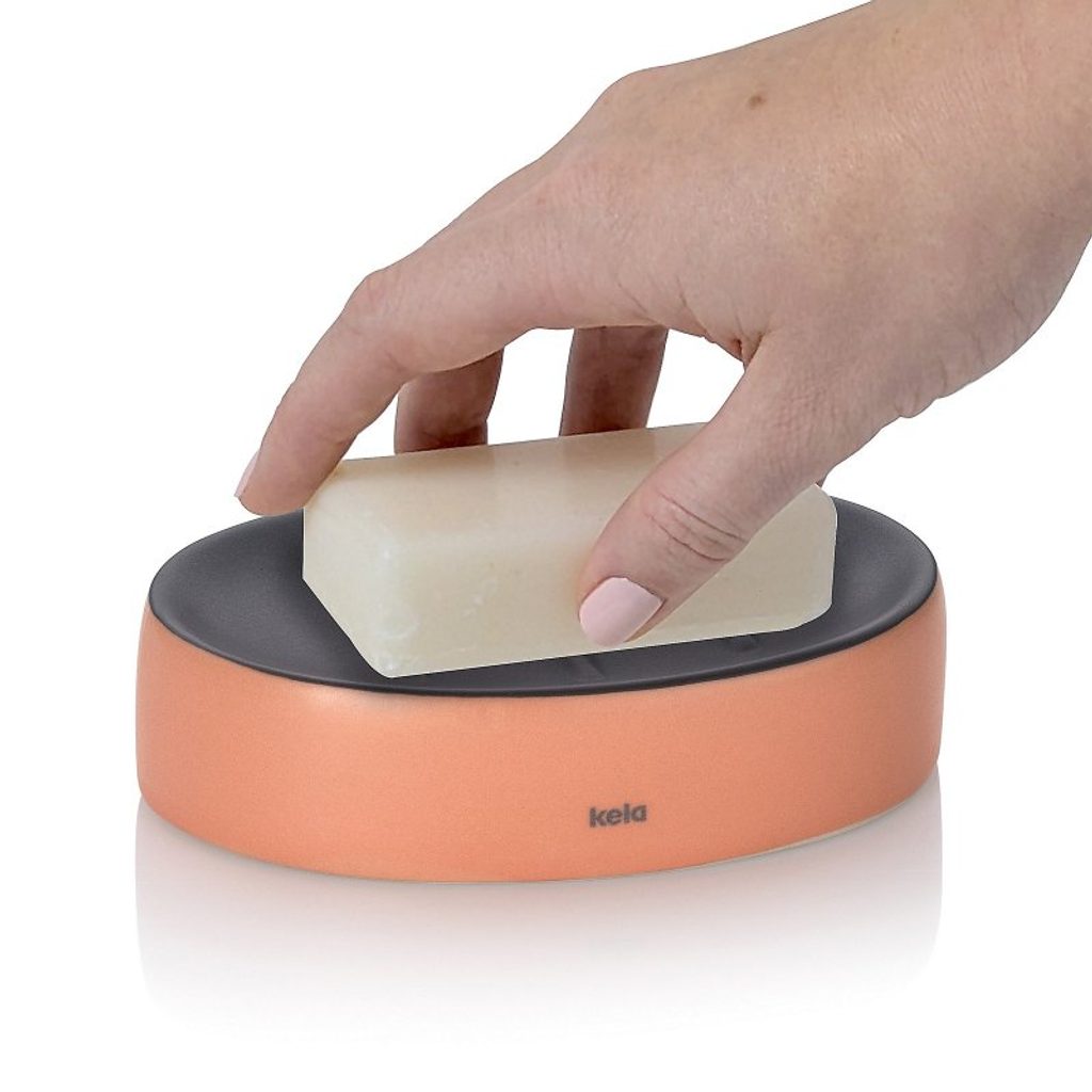 KELA Miska na mýdlo Matsi keramika broskvově růžová 12,5x8,5x3,0cm KL-24085
