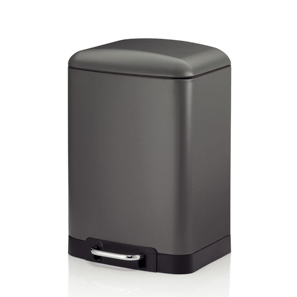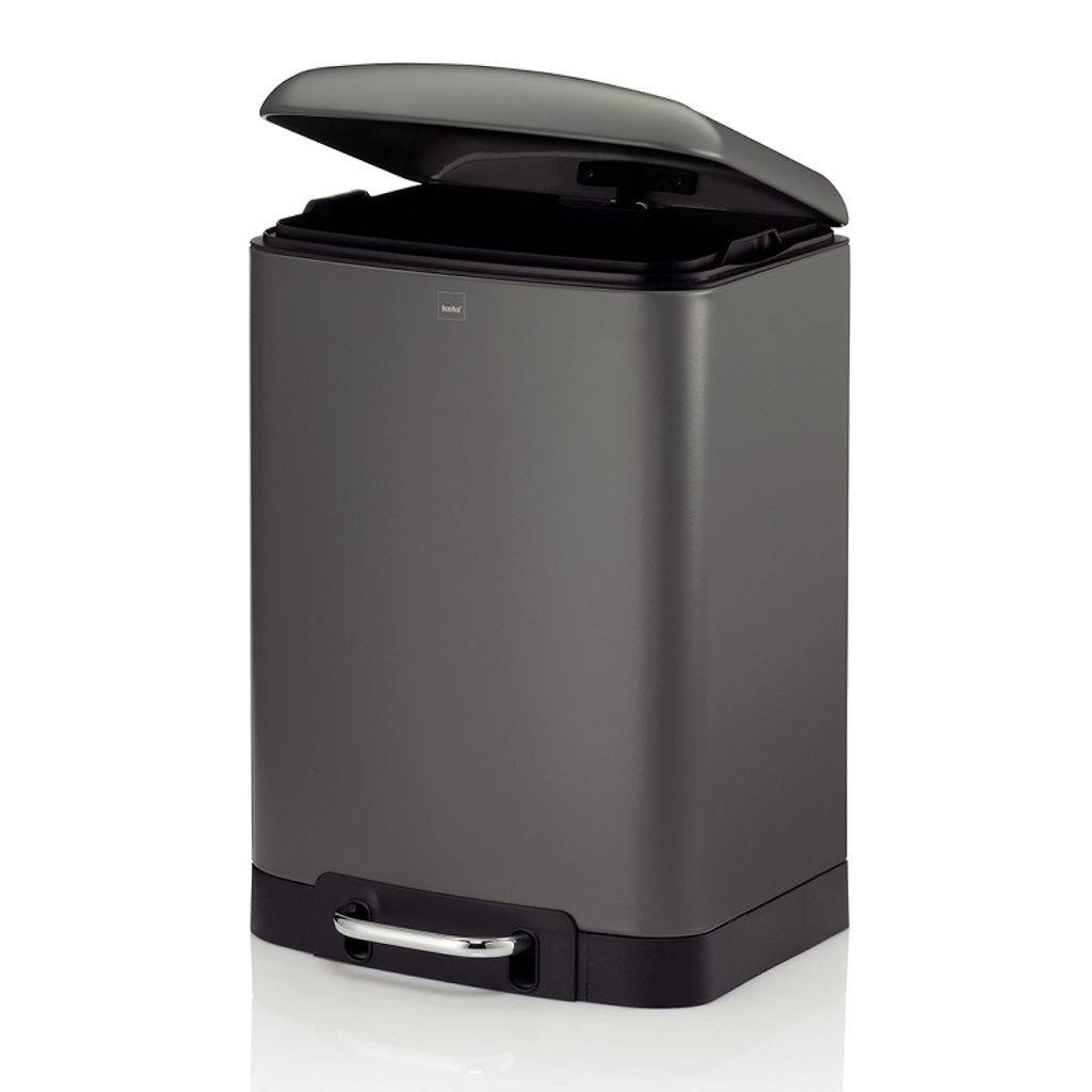 Designový odpadkový koš DAVINO od značky KELA v elegantní antracitové barvě je ideální volbou pro moderní interiéry. Je vyroben z nerezové oceli, která je odolná proti korozi, a disponuje pedálovým otevíráním pro pohodlné a hygienické použití. Díky tichému samodovíracímu systému se víko zavírá jemně a bez hluku.