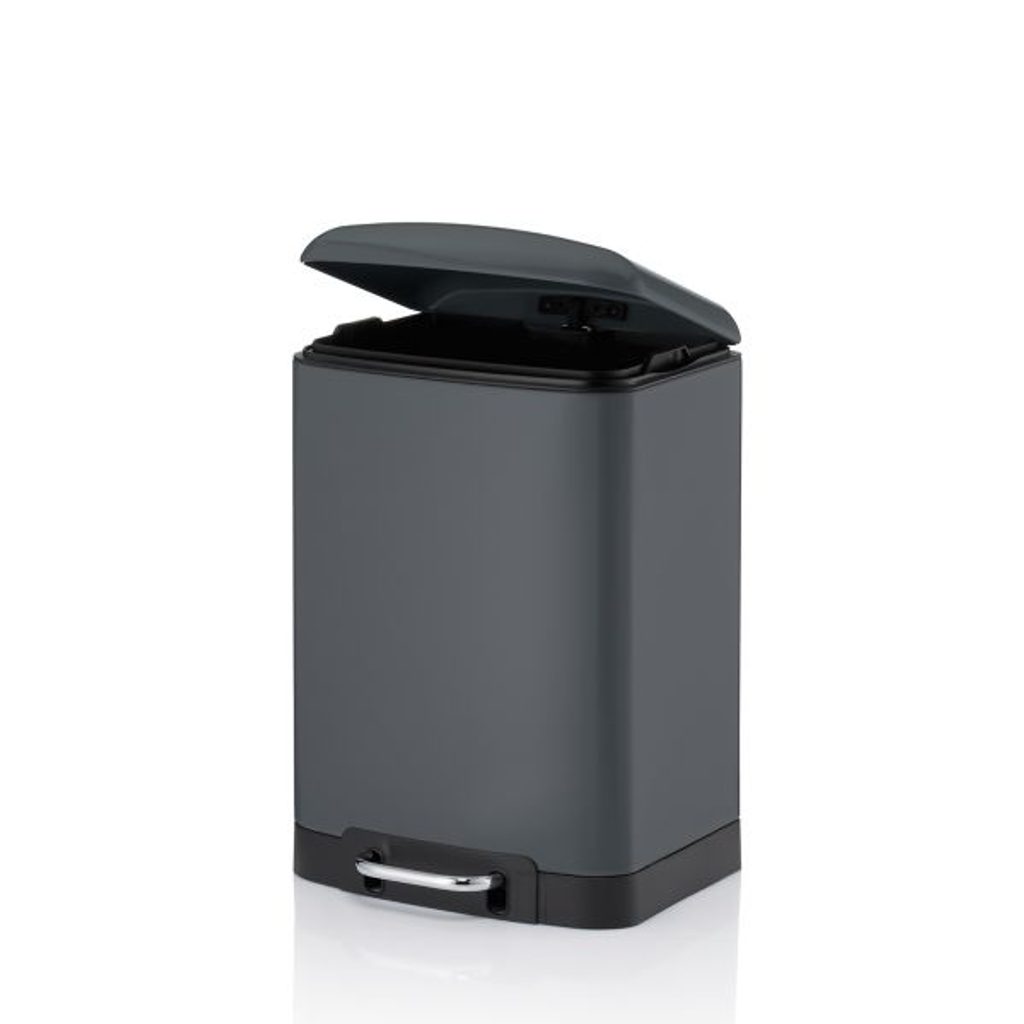 Elegantní a praktický odpadkový koš DAVINO v tmavě šedém provedení přináší moderní design a funkčnost do každé domácnosti či kanceláře. Díky pedálovému mechanismu umožňuje hygienické a pohodlné otevírání bez použití rukou, zatímco tichý samodovírací systém zajistí plynulé zavírání víka. Vyjímatelná vnitřní nádoba usnadňuje manipulaci s odpadem a čištění.