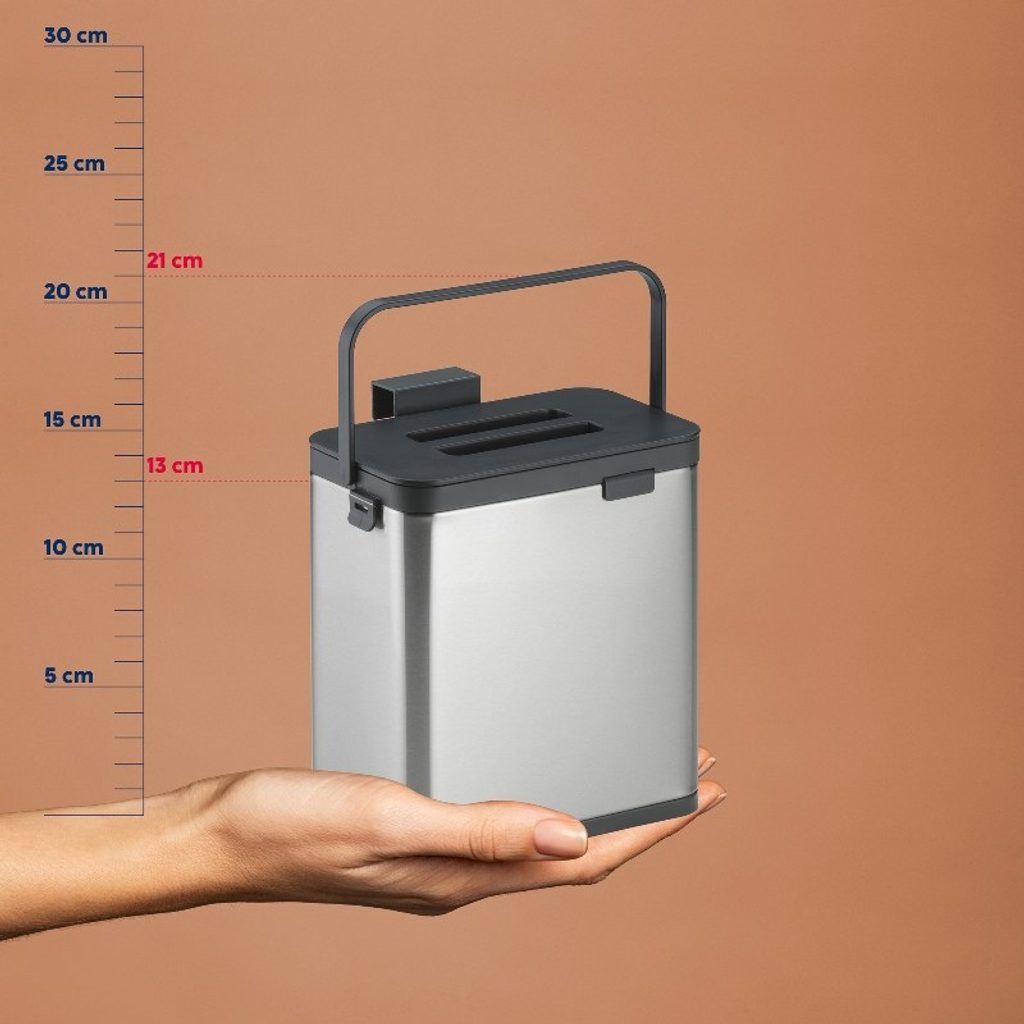 S organickým odpadkovým košem Plata v elegantním matném vzhledu vnesete do své kuchyně pořádek a eleganci. Tento promyšlený kuchyňský pomocník vám nabízí spojení funkčnosti a moderního designu, které vám znatelně usnadní každodenní život.