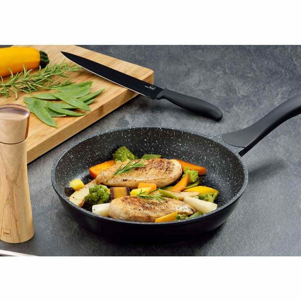 Pánev má kvalitní povrchovou úpravu, díky které se vám s ní bude dobře pracovat a snadno z ní odstraníte nečistoty. Pánev můžete také bez obav dát mýt do myčky.