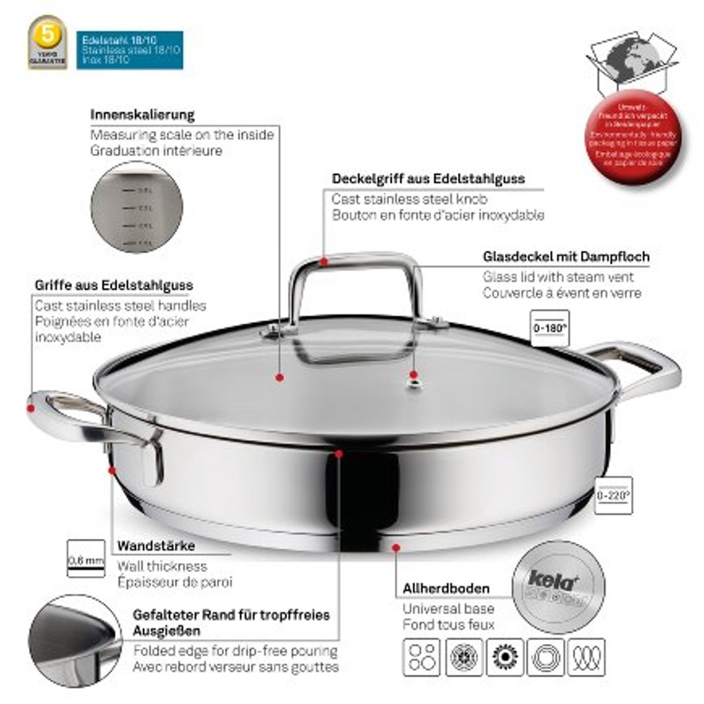 KELA Pánev s poklicí nerez 18/10 FLAVORIA 28 cm KL-10186 - ušlechtilá nerezová ocel v nejvyšší kvalitě 18/10