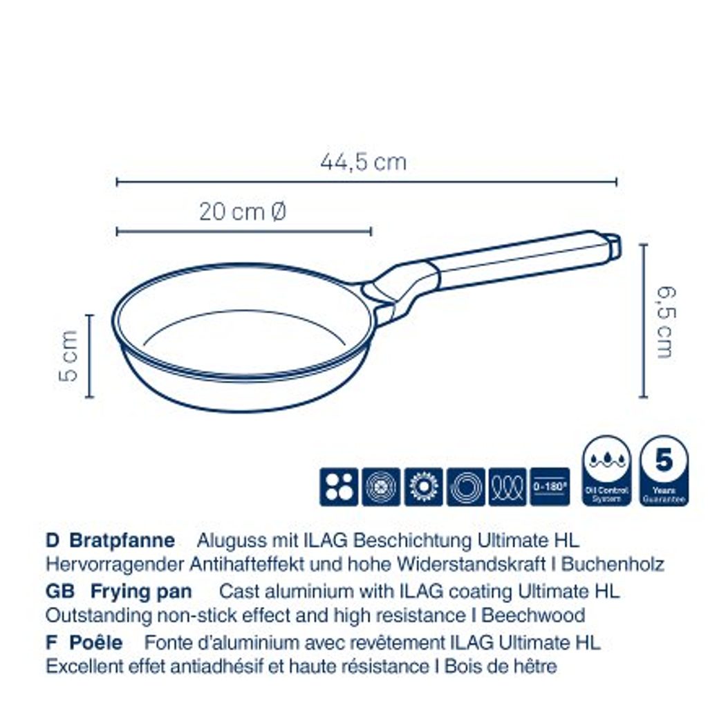 - materiál: litý hliník s nepřilnavým povrchem a dřevěnou rukojetí
