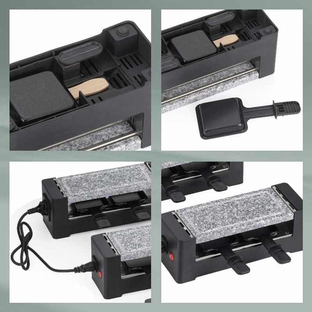 Tato sada na grilování je ideální pro přípravu pokrmů pro dvě osoby. Obsahuje žulovou desku, černé pouzdro, dvě nepřilnavé pánve a dvě dřevěné špachtle. Díky kompaktním rozměrům 33,5x11x11,5 cm je snadno přenosná a vhodná pro použití doma i na cestách.