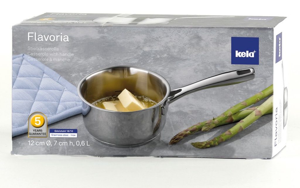 KELA Rendlík nerez 18/10 FLAVORIA 12 cm KL-10179 - ušlechtilá nerezová ocel v nejvyšší kvalitě 18/10 - vynikající vlastnosti pro vaření, smažení, dušení i pečení - tvarově stálé nádobí s pevnou konstrukcí, které lze hodně rozpálit - vícevrstvé sendvičové dno zaručuje maximální efektivitu vaření - dokonale tvarovaná rukojeť pro pohodlnou manipulaci jednou rukou - pevné spojení rukojeti s tělem bez vnitřních spojů a šroubů - dobře čitelná vnitřní odměrná stupnice - široký odlévací okraj, se kterým při přelévání obsahu neukápnete - díky dvěma výlevkám na každé straně rendlíku je slévání obsahu velmi snadné - dno je kompatibilní se všemi druhy sporáků, vhodné i na indukci - díky kvalitní pevné konstrukci může rendlík do trouby - odolá i vysokým teplotám do max 220°C - nádobí Flavoria je ze zcela hygienických materiálů a neobsahuje žádné škodliviny - prémiové zpracování tradiční německé značky KELA - průměr rendlíku: 12 cm - výška: 7 cm - objem: 0,6 litru - trouba: 220°C - myčka: ano - indukce: ano - sklokeramika: ano - plyn: ano - elektřina: ano - povrch: nerezový - záruka: 5 let - série: FLAVORIA - značka: KELA
