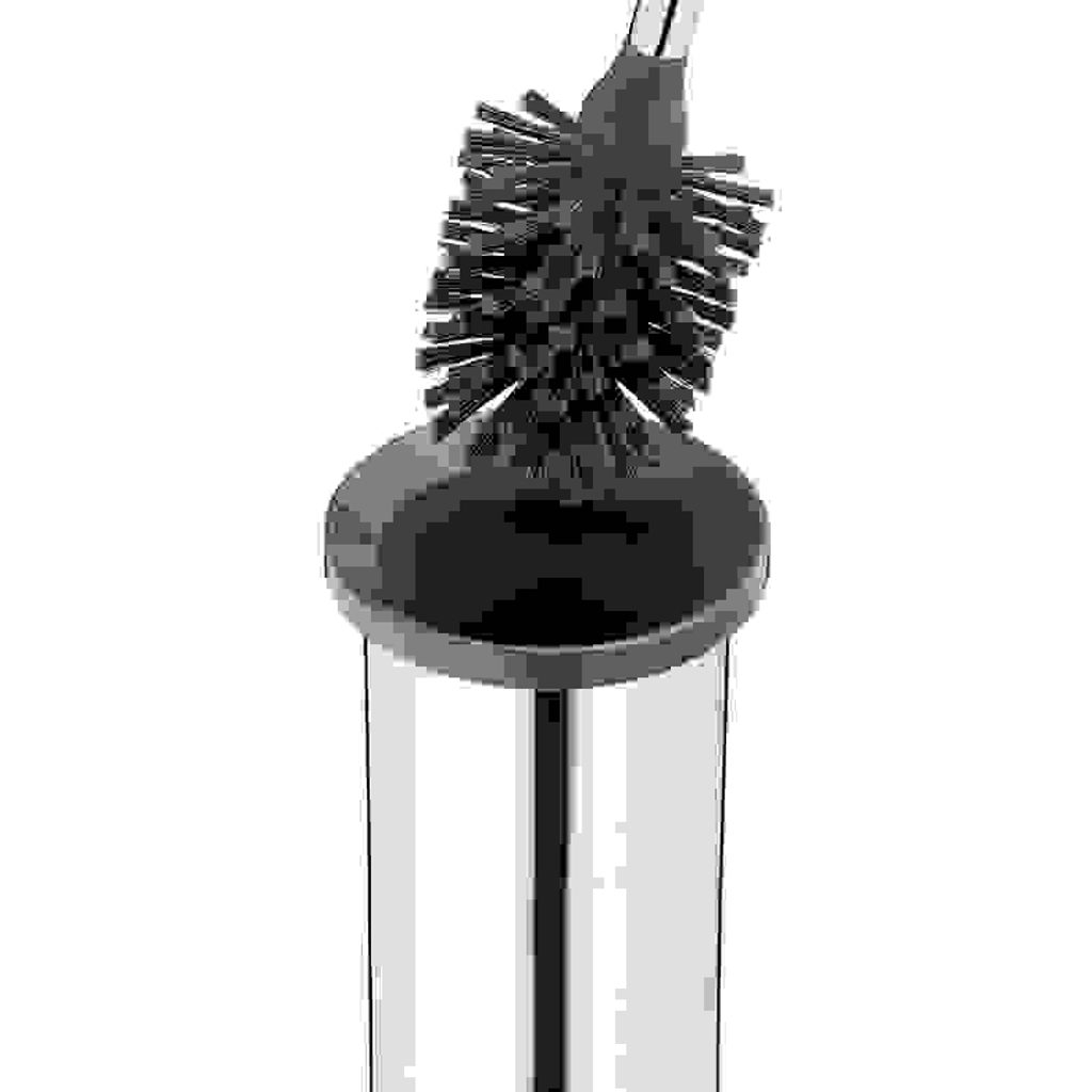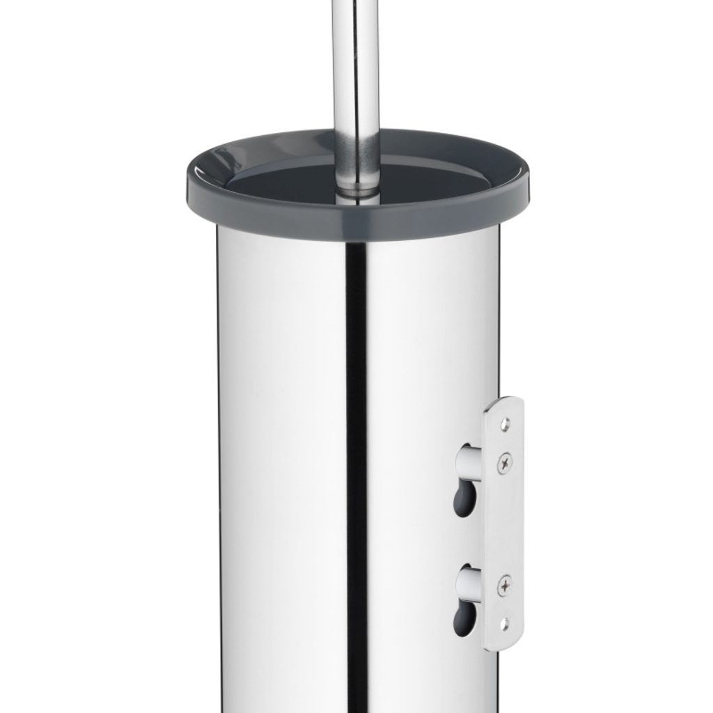 KELA WC sada Alor nerez 18/10 tmavě šedá KL-23162 WC sada Alor z leštěné nerezové oceli pro montáž na stěnu. Tento vysoký uzavřený model přesvědčí v mnoha ohledech. Kromě jednoduchého vzhledu působí tento model extrémně robustně, a to je přesně ten případ. Nádobu na kartáč lze kdykoli snadno vyjmout z nástěnného držáku, což značně usnadňuje pravidelné čištění. Díky širokému okraji tmavě šedého plastového vnitřního kalíšku se tmavě šedý kartáček včetně krytu vždy přesně zasune do kalíšku odpovídající barvy a stojí rovně a stabilně. Přesvědčte se sami. 11,5 cm. Výška 38 cm. Nerezová ocel 18/10 leštěná s nástěnným držákem ABS plast tmavě šedý vysoký 11,5 cm cm 38 h