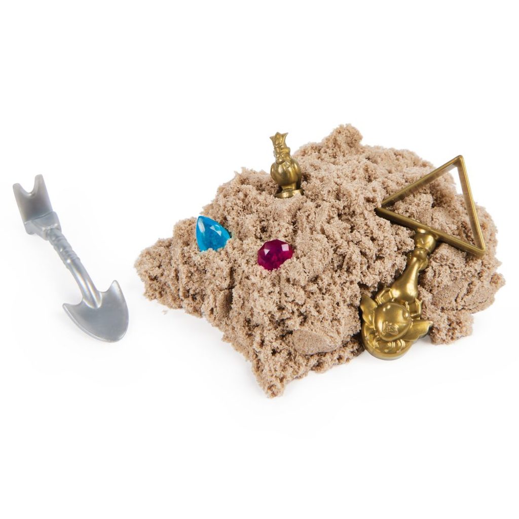 Sada Mumie obsahuje 170 g písku, formičku, nářadí, jedinečný nástroj a diamanty. Jako překvapneí můžete najít zlatou minci. Vhodné od 3 let.