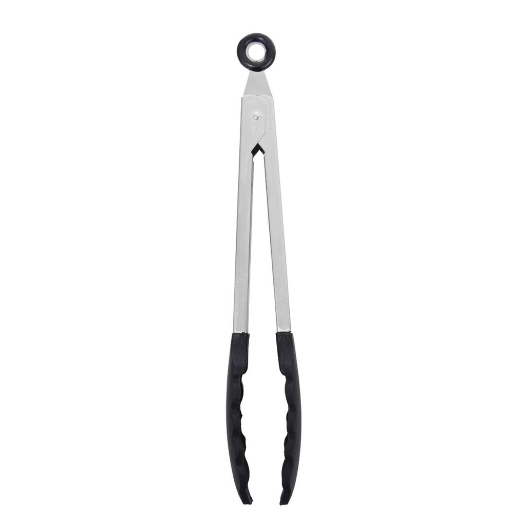 Kleště se silikonovými čelistmi a ochrannou vrstvou silikonu na rukojeti využijete v kuchyni především k obracení horkých pokrmů v rozpáleném tuku, využijete je však i při grilování. Materiál: čelisti - silikon odolný teplotám -40 °C až +220 °C, rukojeti - kov -40 °C až +100 °C. Jednoduchou manipulací závěsného očka dochází k uzavření kleští. Rozměry: d. 35 cm, š. 4 cm.
