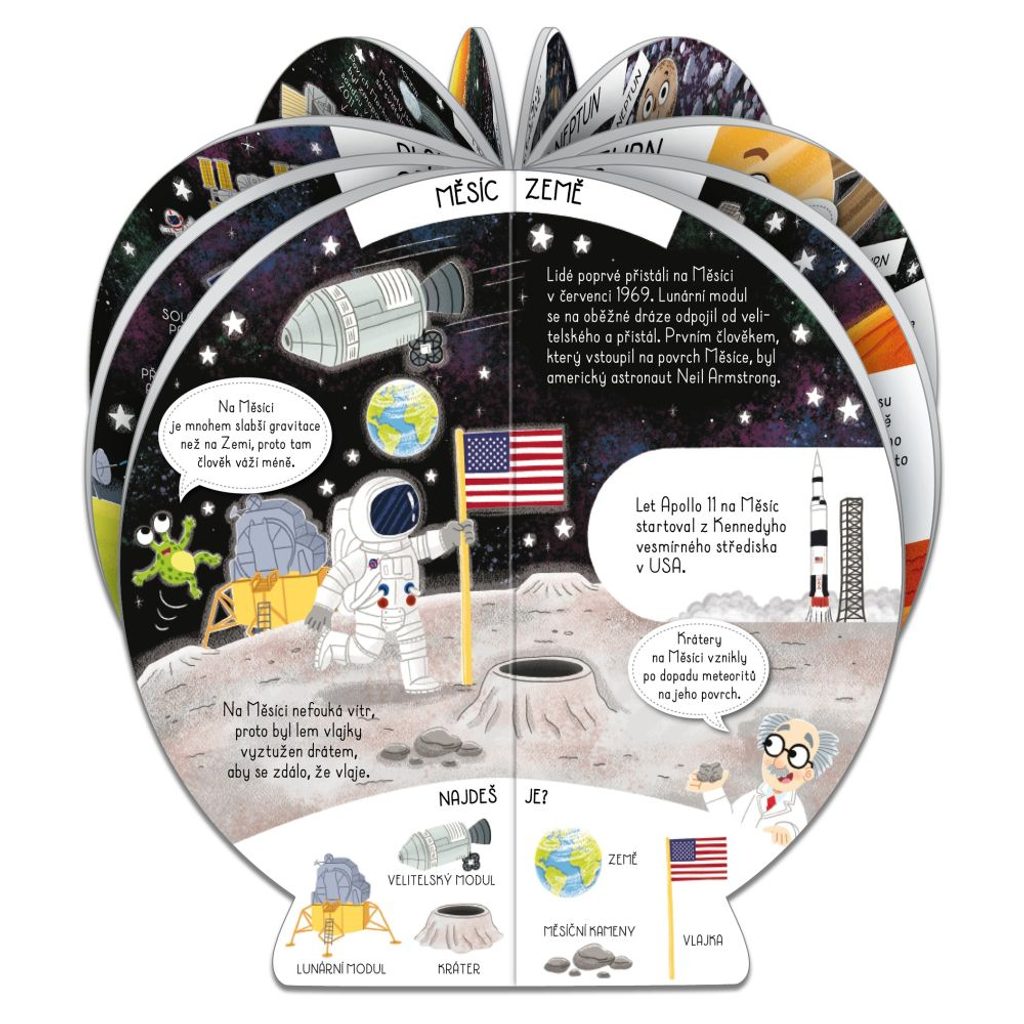 JEDINEČNÁ PLANETA - VESMÍR: Rozkládací kniha s pevnými listy ve tvaru globusu na téma Vesmír.