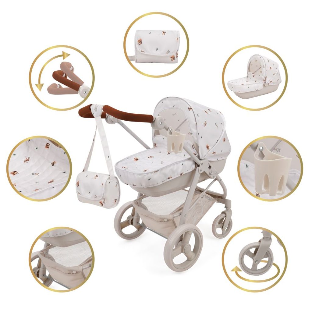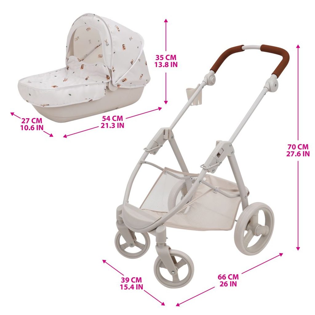 Kočárek Bella pro panenky 2 v 1 • Rozměry výrobku cca 67,5 x 40,5 x 74 cm • Luxusní kočárek s odnímatelným kočárkem • Dodává se se stříškou a návlekem na botičku • Nastavitelná rukojeť • Otočné přední kolo • Velký košík • Součástí balení je taška na příslušenství • Vhodné pro panenky do cca 53 cm