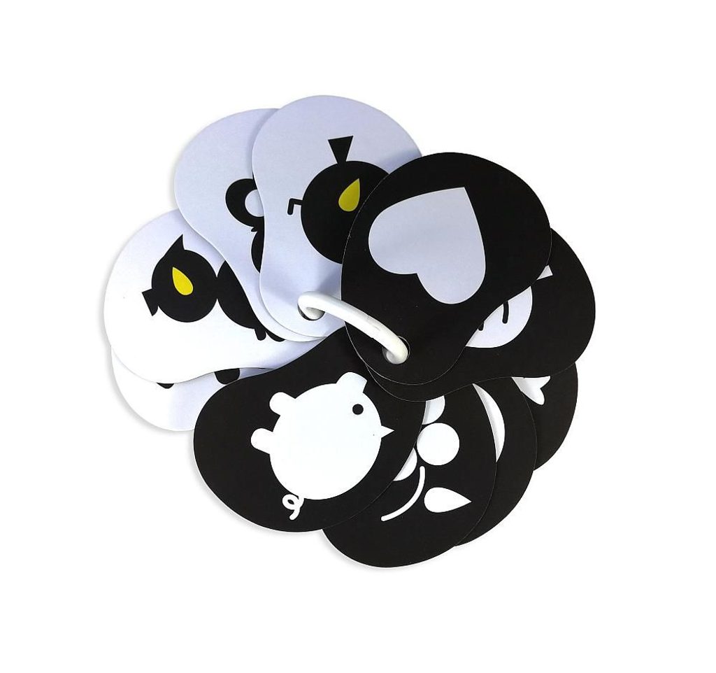 Kontrasty jsou vhodné pro miminka od 3 měsíců, kdy zaostřují svůj zrak na obrysy, ostré hrany a začínají používat hmat. Kartičky mají proto různé tvary a barevné rozložení pro první seznámení s tvary a obrysy.