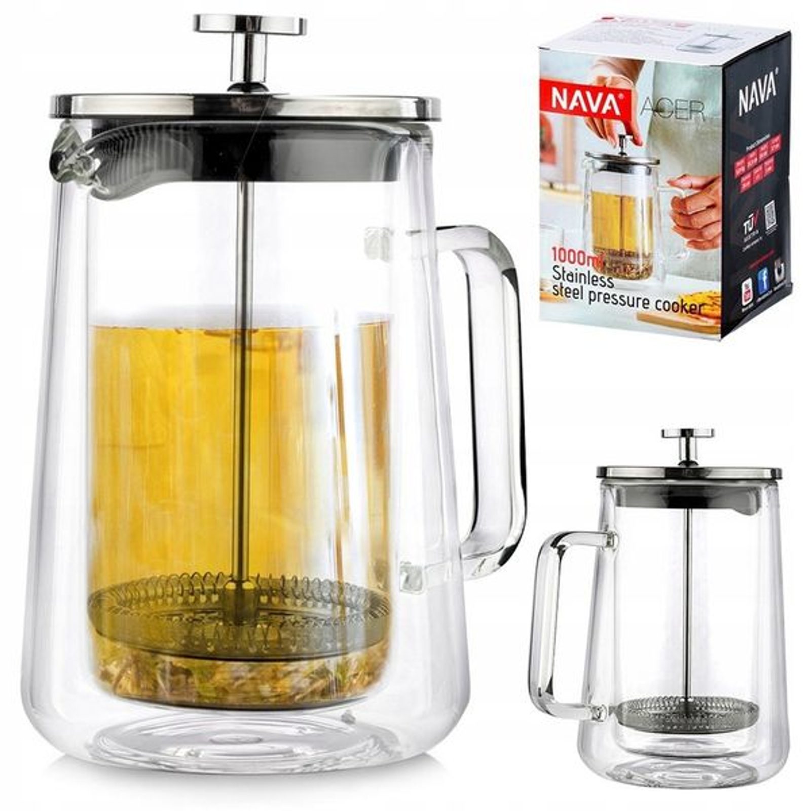 - konvice 1,00l ACER 2stěnná, COFFEE MAKER, sklo+plast