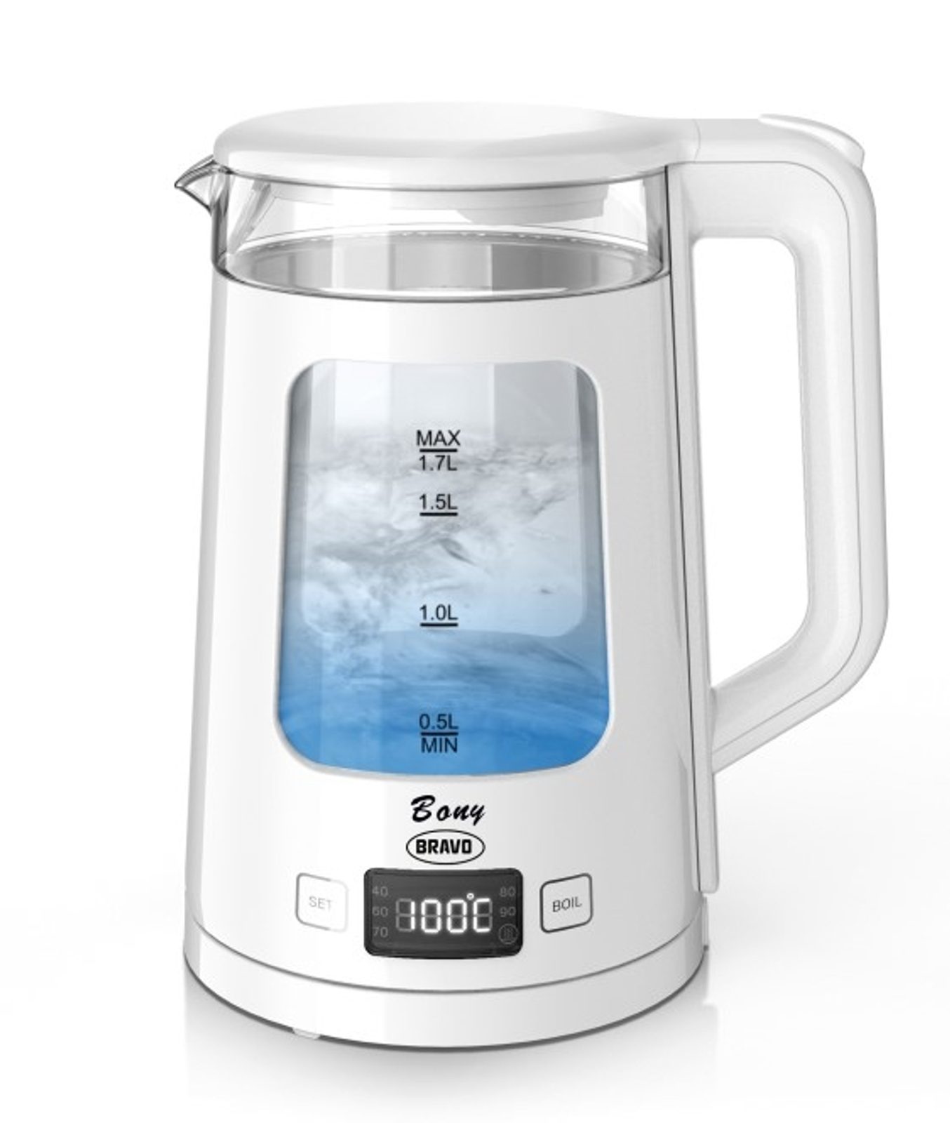 - konvice var. 1,7l B-4999, BONY, dvouplášť. s regulací, sklo, bílá