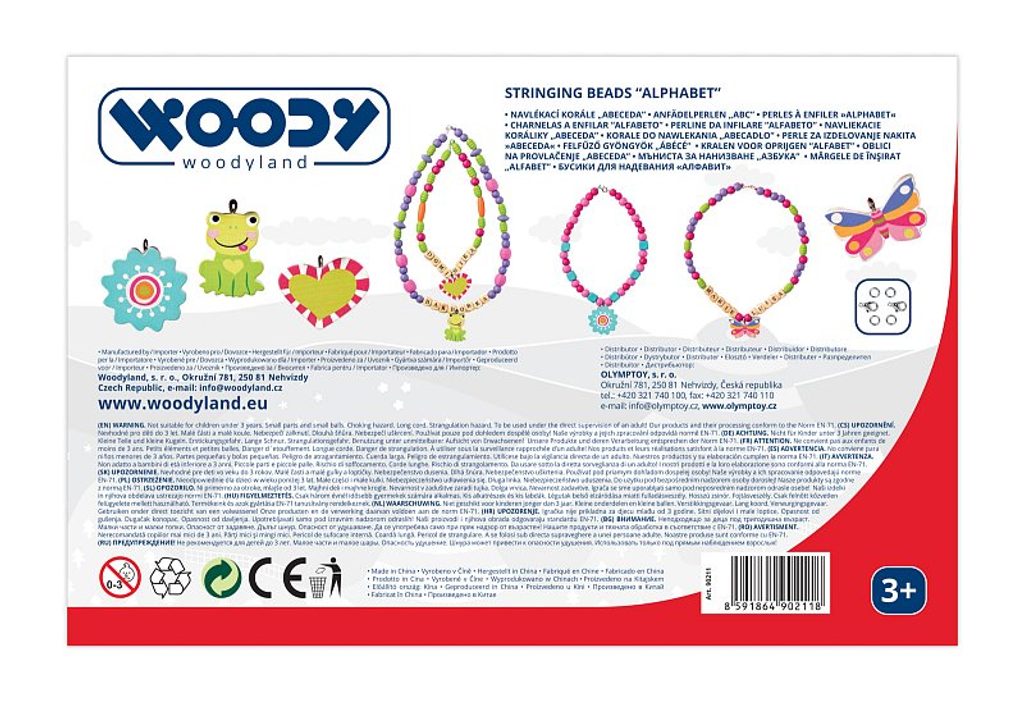Sada obsahuje: barevné korálky různých tvarů, korálky s motivem ABC, květin, srdíček, zvířátek a šňůrky k navlékání se zapínáním.