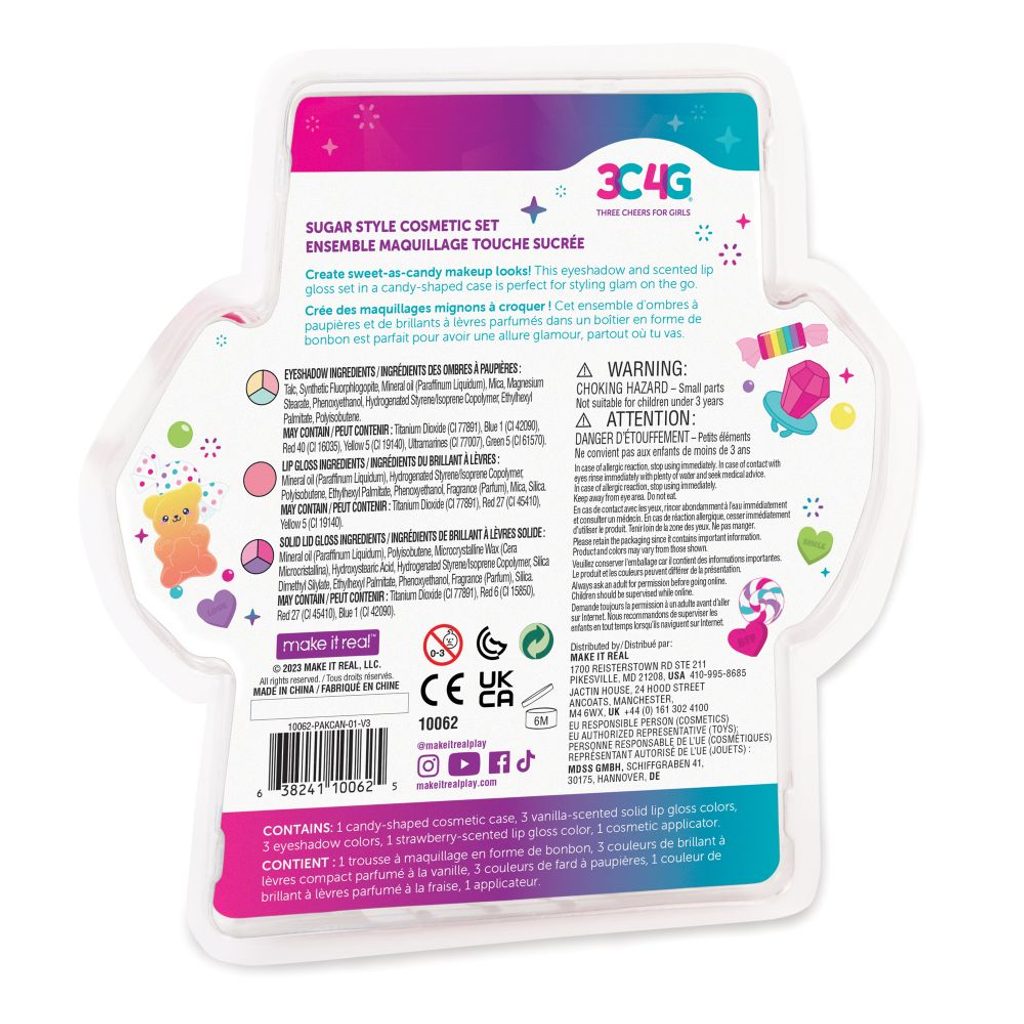 Vezměte si tuto sladkou kosmetickou sadu na cesty! Tato sada s pestrou nabídkou očních stínů a voňavého lesku na rty je uložená v roztomilém pouzdře ve tvaru bonbónu. Sada obsahuje 3 pevné lesky na rty s vůní vanilky, 3 barvy očních stínů, aplikátor a 1 tekutý lesk na rty s vůní jahod. Veškerá kosmetika je testována na bezpečnost pro děti od 8 let. Skvělý tip na dárek k narozeninám nebo k svátku. Vezměte si tuto sladkou kosmetickou sadu na cesty! Tato sada s pestrou nabídkou očních stínů a voňavého lesku na rty je uložená v roztomilém pouzdře ve tvaru bonbónu. Sada obsahuje 3 pevné lesky na rty s vůní vanilky, 3 barvy očních stínů, aplikátor a 1 tekutý lesk na rty s vůní jahod. Veškerá kosmetika je testována na bezpečnost pro děti od 8 let. Skvělý tip na dárek k narozeninám nebo k svátku.